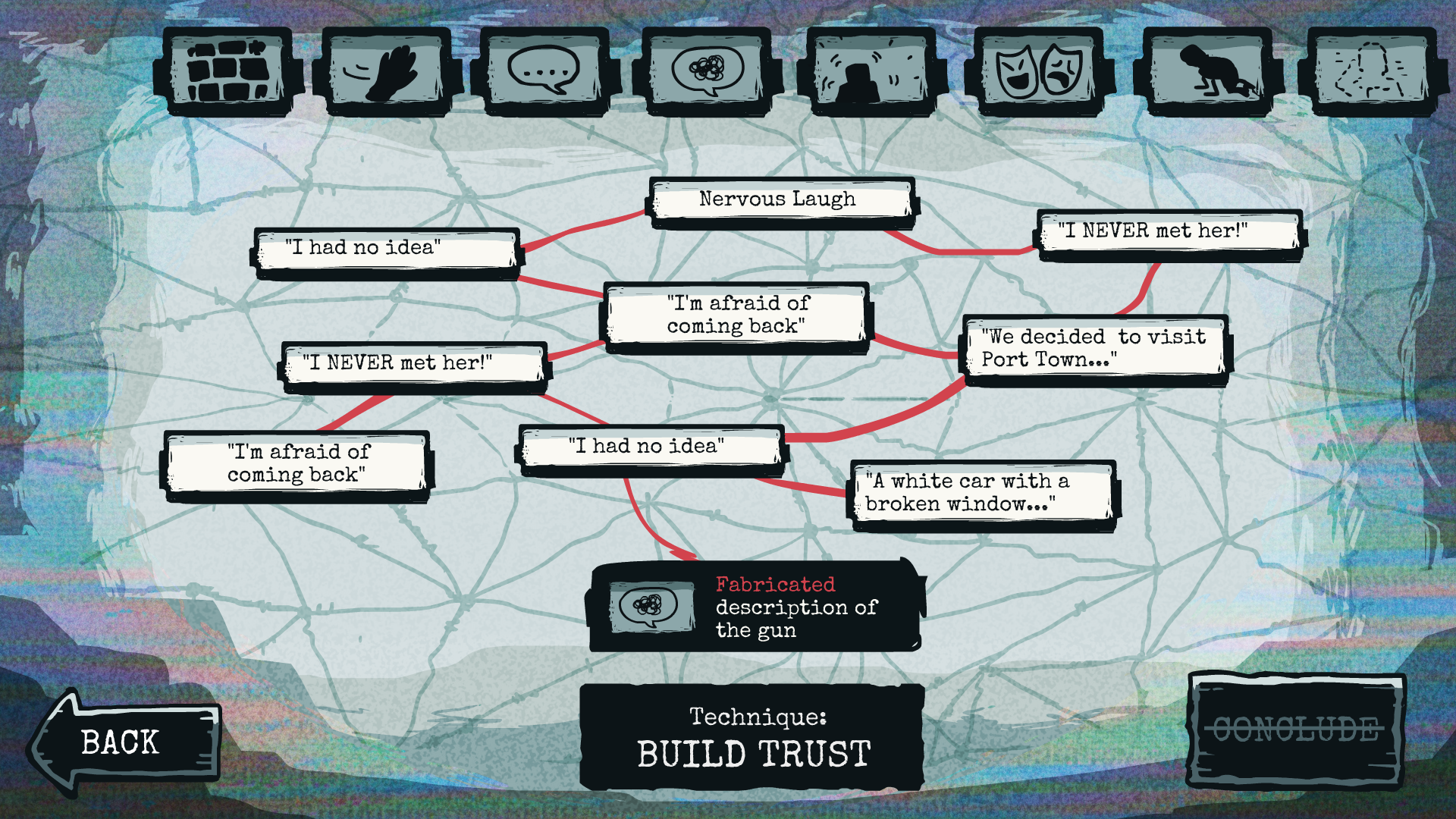 - Focus on real interrogation behaviors: Fabrication, Avoidance, Narrative Gaps, Emotional Leakage, and more.